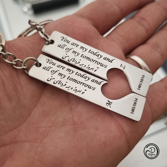 جاکلیدی استیل ست مستطیل طرح قلب با حک دلخواه شما