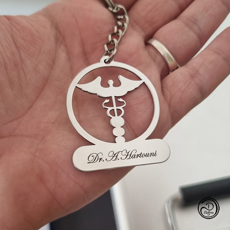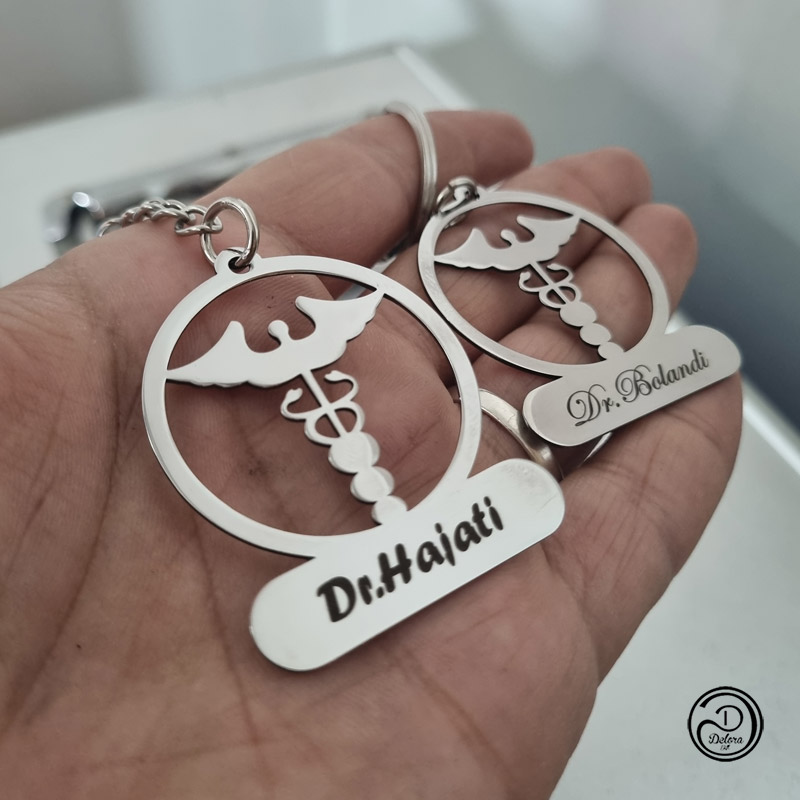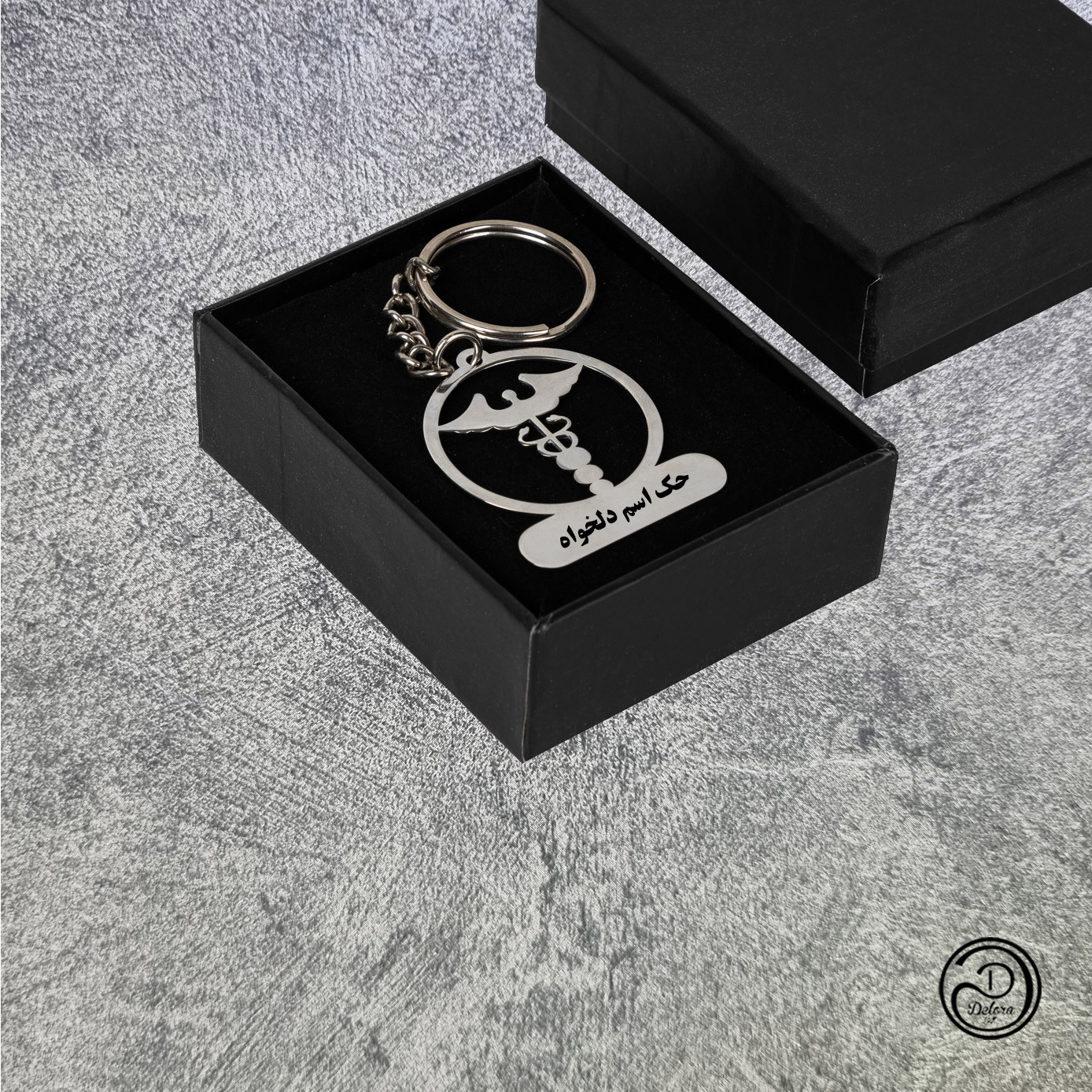 جاکلیدی/جاسوئیچی استیل پزشک با حک اسم دلخواه